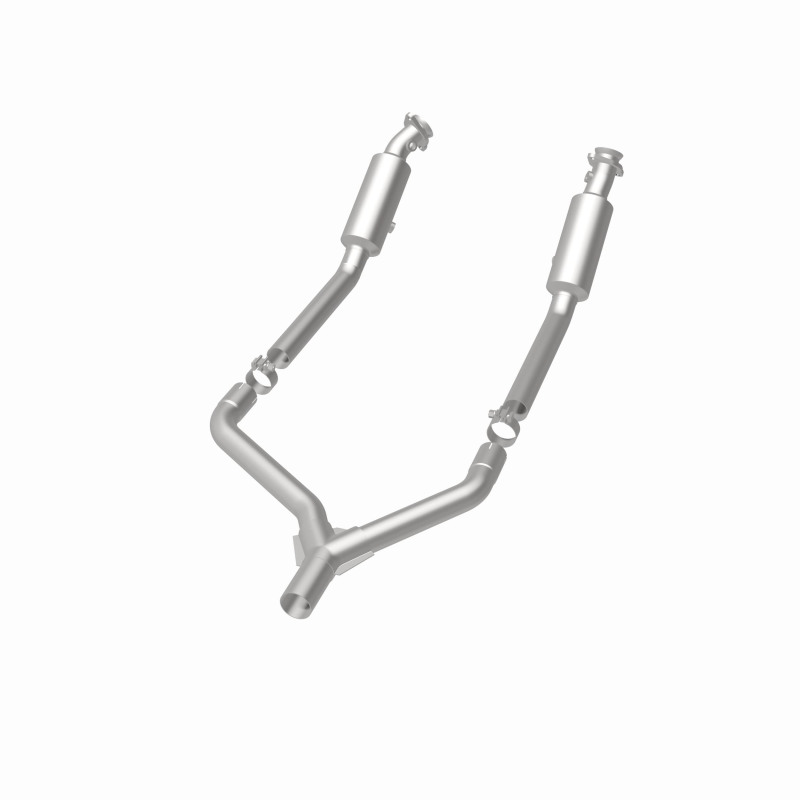 Keep the check engine light off with MagnaFlow HM Grade Federal/EPA Compliant Direct-Fit Catalytic Converter 23012. With features including free-flowing mandrel-bent tubing and highly corrosion resistant stainless steel construction, easily install this spun body converter yourself using the proper tools, no cutting or welding required. MagnaFlow's state-of-the-art metrology department uses the latest 3D scanning systems during research and development, so you can be confident that your new part will fit and function like the original equipment. By replicating the OE spun body design, the single laser fusion weld greatly reduces the possibility of a leak, and our compact, low-mass design also allows for greater thermal efficiency. This direct-fit catalytic converter is designed specifically for the 2005-2010 Ford Mustang and interchanges with OE part 8R3Z-5F250-E. Hardware is included to eliminate the hassle of working with corroded factory parts. This replacement part is designed to meet or exceed Federal emissions requirements set forth by the EPA, complying with legal standards for OBDII Federally registered vehicles with Federal/EPA Emission systems.