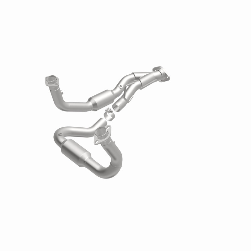 Keep the check engine light off with MagnaFlow HM Grade Federal/EPA Compliant Direct-Fit Catalytic Converter 24471. With features including free-flowing mandrel-bent tubing and highly corrosion resistant stainless steel construction, easily install this spun body converter yourself using the proper tools, no cutting or welding required. MagnaFlow's state-of-the-art metrology department uses the latest 3D scanning systems during research and development, so you can be confident that your new part will fit and function like the original equipment. By replicating the OE spun body design, the single laser fusion weld greatly reduces the possibility of a leak, and our compact, low-mass design also allows for greater thermal efficiency. This direct-fit catalytic converter is designed specifically for the 2005-2006 Jeep Grand Cherokee and interchanges with OE part 5209 0044AF. Hardware is included to eliminate the hassle of working with corroded factory parts. This replacement part is designed to meet or exceed Federal emissions requirements set forth by the EPA, complying with legal standards for OBDII Federally registered vehicles with Federal/EPA Emission systems.