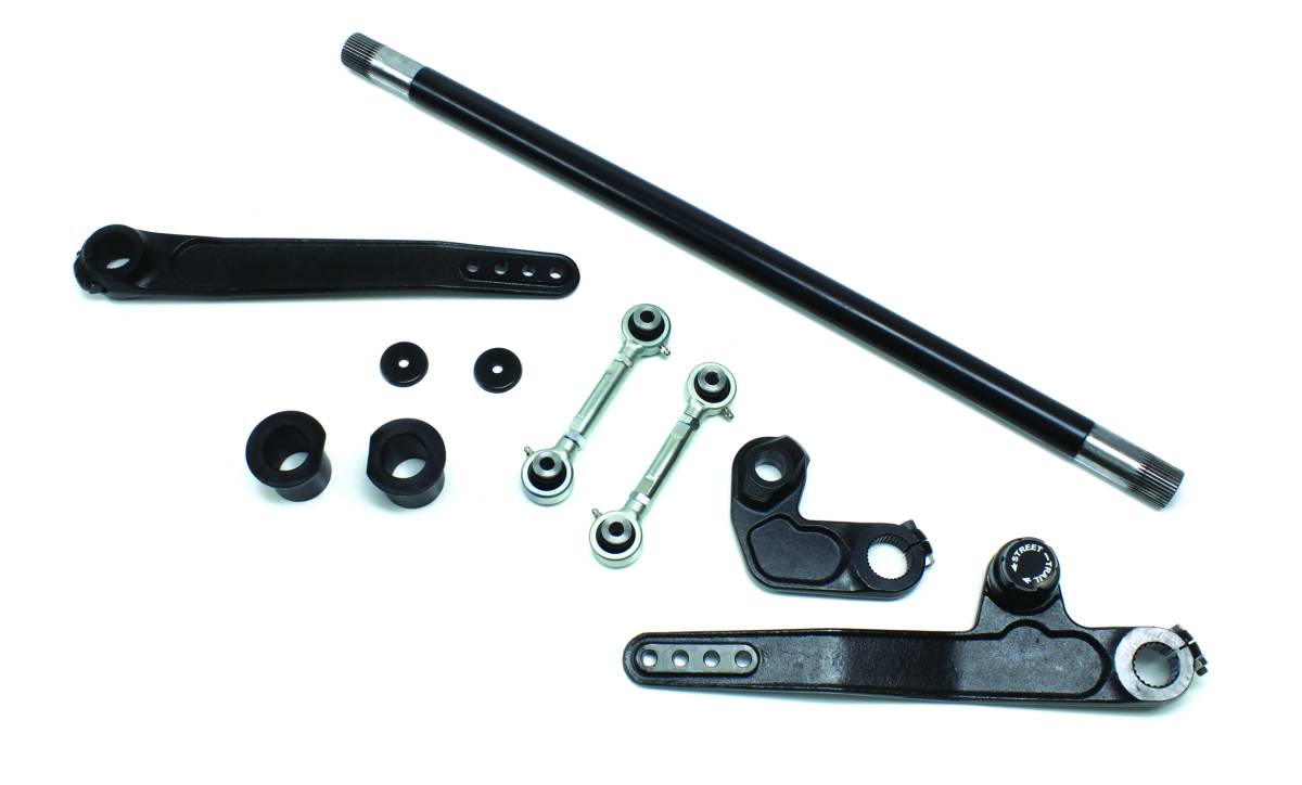 The TeraFlex Single Rate ST (Street & Trail) Front Sway Bar System is the most advanced manual sway bar disconnect system available. The Easy Engagement Knob allows you to go from street to trail in seconds! A simplified version of our Dual-Rate ST Front Sway Bar System (# 1753720), the Single-Rate ST Front Sway Bar System features a heavy-duty ?Street" torsion bar for superior highway handling. The forged sway bar arms feature several link mounting points to fine tune the torsion rate. Simply twist the knob to disengage the ?Street" sway bar for unrestricted off-road articulation; then simply twist the knob again to re-engage the street sway bar for the highway!