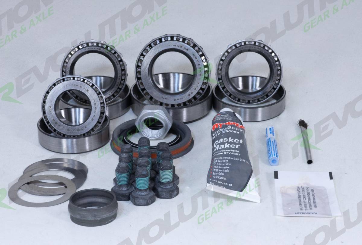 Revolution Gear and Axle GM 8.25 inch IFS Master Overhaul Kits come with all the necessary parts to ensure your differential job is a success. Revolution Master Overhaul Kits come with top quality Timken Bearings and National seals. Our Kits also include: Pinion seal, Pinion Shims, Carrier Shims, Pinion Nut, Gasket or Sealant, Preload Shims or Crush Sleeve, Ring Gear Bolts, Gear Marking Compound and Loctite.
