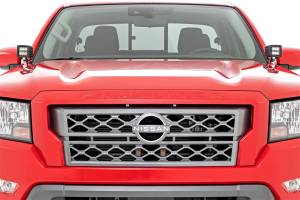 Light Up the Night. Rough Countrys Ditch Mounts for your 2022 Nissan Frontier give you all the performance and durability that Rough Country is known for and provide plenty of light coverage for use on the trail or work site. These LED lights have a powerful punch of light, illuminating both sides of the trail for maximum safety. Heavy-Duty Build Quality. Rough Countrys Ditch Mounts are compatible with RC Round or Square lights. The ditch mounts come in a choice of spot beams for longer distance illumination or floods for a wider light beam. The IP67 waterproof protection means your lights will stay safe from dust, mud, and rain. Made from 7-gauge steel and powder-coated black, our Ditch Mounts are strong, durable, and ready for whatever you can dish out. Installation and Warranty. Designed to be a straightforward bolt-on installation with no drilling, Rough Countrys Ditch Mounts can be easily mounted without interfering with your Frontiers wipers or hood. You will need to trim a small section of the plastic cowl to install this kit. All necessary hardware and brackets are included, along with detailed instructions. As with all Rough Country products, the Ditch Mounts are covered by our Limited Lifetime Warranty.