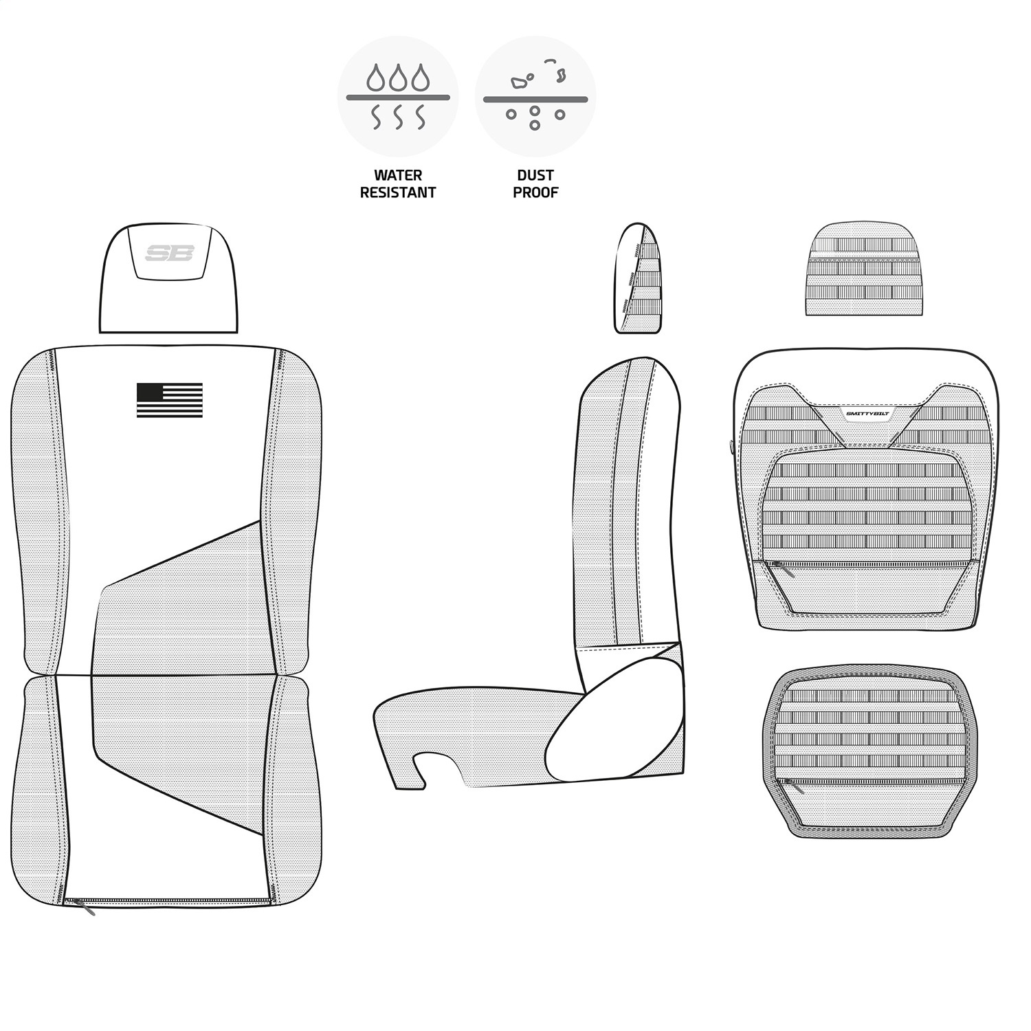 Smittybilts New G.E.A.R. Custom Fit Seat Covers Are A Great Place To Store First Aid Supplies, Flashlights, Matches, And Other Essentials Where They Are Easy To Access In Your Jeep Wrangler. Crafted From 600 Denier Ballistic Nylon, The Waterproof G.E.A.R. Seat Covers Are Fitted With Zippered Map Pockets, Molle Pouches, And Webbing To Lash Even More Gear To Your Jeep.