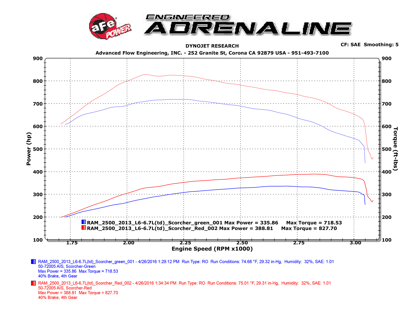 A simple 30 minute install will give you a huge increase in power. The aFe POWER SCORCHER HD Module includes a high quality case & wire harness with factory style connectors for an easy plug & play installation. A LED light switch provides In-Cabin On-The-Fly power adjustments. The 4-Power settings are adjustable with one button and the LED light represent the settings: Stock (Green), Sport (Yellow), Sport+ (Orange) and Race (Red) . This performance module increase turbo boost and fuel pressure. It improves vehicle performance and throttle response. In testing, this module resulted in significant +50 horsepower and up to +90 lbs. x ft. of torque verified by our in house dyno. This quick and easy plug & play SCORCHER HD module adds significant power by altering pressure sensor signals to increase turbo boost and fuel pressure to improve vehicle efficiency, power and throttle response. SCORCHER HD modules features In-Cabin On-the-Fly power adjustment to accommodate any situation. This adjustment is controlled by via LED light switch with a button that can be easily mounted in any location in the cabin. aFe SCORCHER HD modules uses high quality aluminum extrusion black powder-coated enclosure casing and factory style connectors which requires no modification to your factory harness. These factory style connectors, plugs directly into the stock wiring harness connectors and sensors. SCORCHER HD modules are 100% tested for proper protection. These modules work amazingly on stock vehicles and are optimized for maximum performance with use of aFe POWER performance products. This SCORCHER HD module works on Cab and Chassis truck. aFe POWER does not recommend to use with any other tuners or modules. aFe POWER recommends to use the SCORCHER HD module in Sport or Sport+ settings during towing.