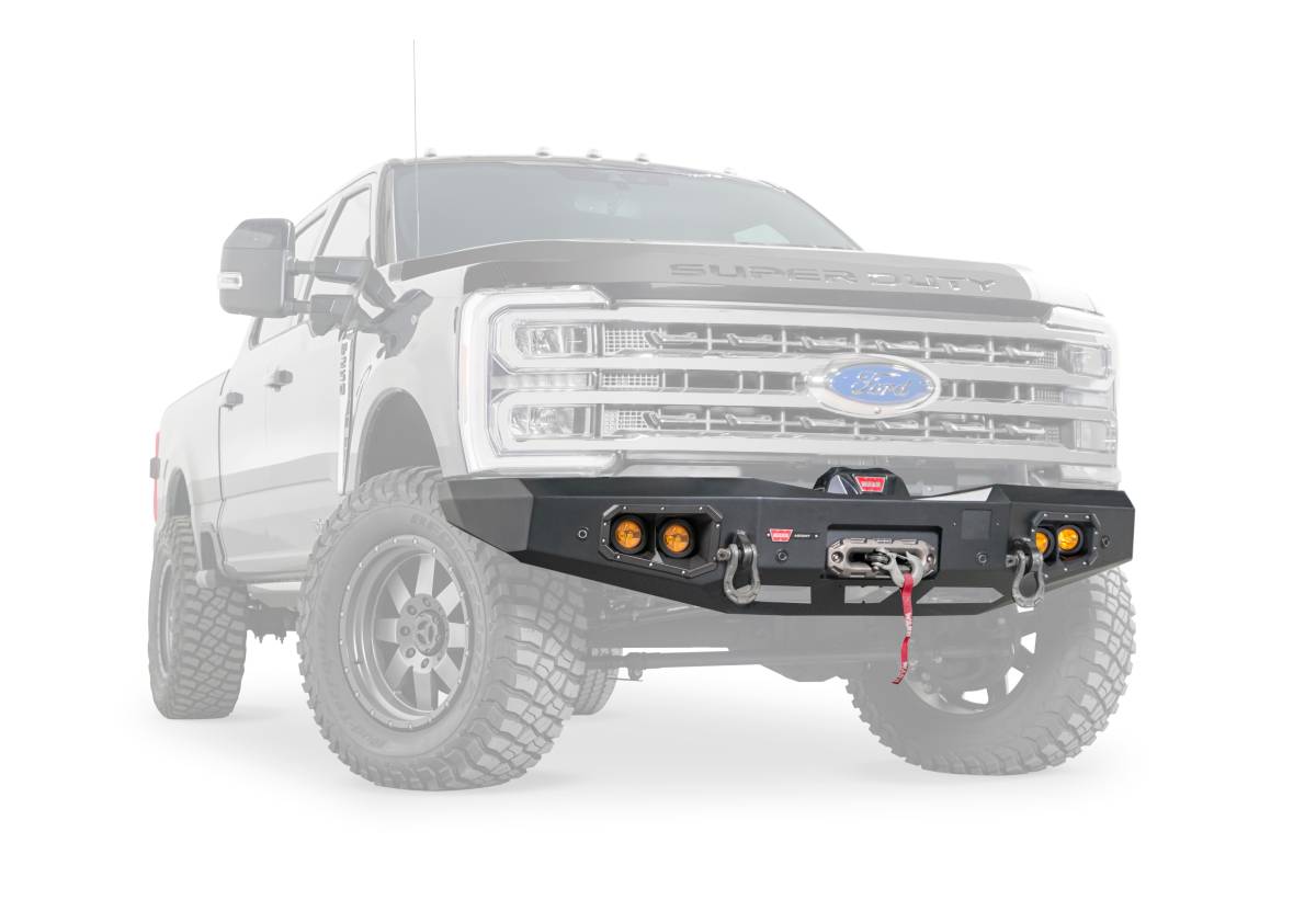 Ascent Front Bumper for Ford Super Duty featuring an integral winch mount for WARN mid-frame winches