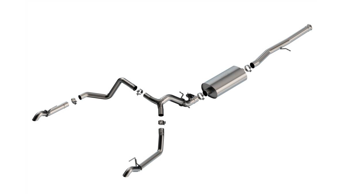 Touring Cat-Back(tm) Exhaust System 2024-2025 Chevrolet Silverado 1500 ZR2/ GMC Sierra 1500 AT4X 6.2L V8 Automatic Transmission 4WD Crew Cab With Short Bed (5' 9") 147.4" Wheelbase/Turn Down Tail Pipes/Borla(r) System Has A Valve Simulator.