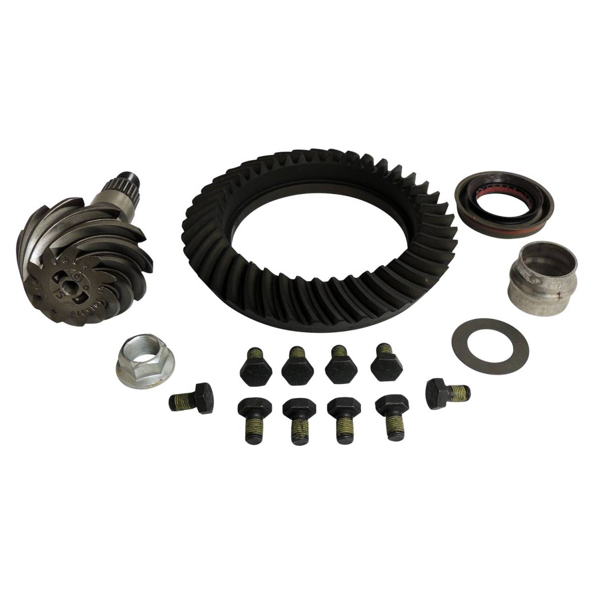 Dana 44 Front Axle Ring & Pinion Kit for 2007-2018 Jeep JK Wrangler, 3.73 Ratio.Includes Ring & Pinion, Ring Gear Bolts, Crush Sleeve, Pinion Seal, Pinion Washer, and Pinion Nut.