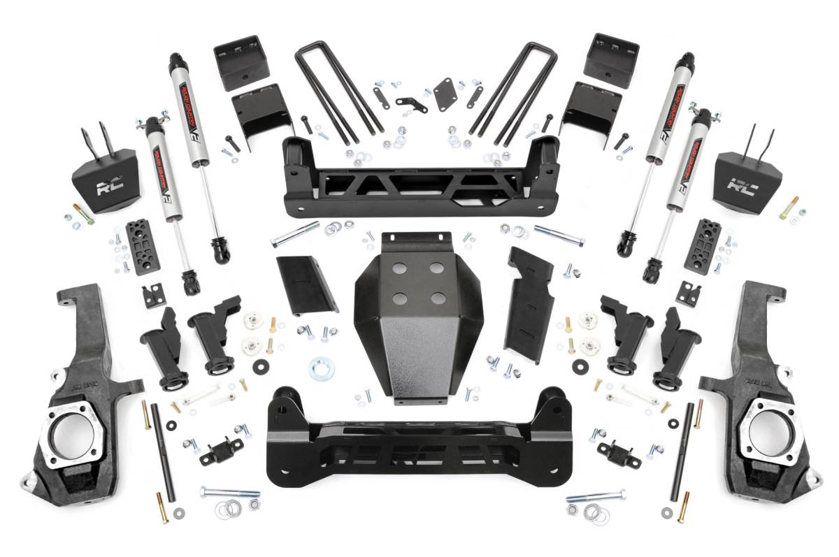 - Straight from the lot, the GM 2500HD/3500HD boasts an aggressive stance and sleek design. Inspired by its bold presence, Rough Country developed a suspension kit that enhances its performance without compromising its sharp aesthetics. The 7.5" Suspension Lift for GM 2500HD/3500HD incorporates a Torsion Drop Design that improves ride quality and handling while maintaining factory angles for a smooth, balanced drive. Torsion Drop Design: Provides improved ride quality and handling, while preserving factory angles for a smooth and controlled drive. Heavy Duty Components: Features 1/4" thick steel crossmembers, Torsion Bar Drop Brackets, and a rugged skid plate all laser-cut and powder-coated in "Hammer Black" to match factory components. No Drilling or Differential Modifications Required: Install with ease, no invasive modifications needed to maintain the integrity of your truck. Precision Fitment: Designed to preserve the factory ride feel and handling without widening the track width, ensuring your GM 2500 HD stays sharp around corners. Customizable Shock Options: Choose from a range of high-performance shock options, including our nitrogen-charged N3 shocks, V2 monotube shocks, M1 monotube shocks, and adjustable Vertex shocks. The power to select the right shock series for your needs is in your hands. Rough Country's 7.5" Suspension Lift doesn't t just look like it came off the showroom floor it feels like it too. Achieve the perfect balance of strength, style, and smooth handling with this innovative lift kit, designed specifically to complement your GM 2500HD/3500HD.