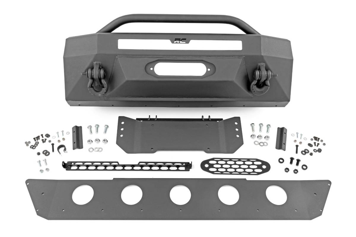 - Give the front of your 4Runner an aggressive, new appearance with Rough Country's Front Hybrid LED Bumper. This easy-to-install upgrade gives your SUV an improved look and better protection, with a 20in LED Light Bar that offers impressive off-road illumination and added winch capabilities your daily driver can become your weekend warrior! Rough Country's Hybrid Bumper Kit is modular, letting you pick and choose the options you prefer. Each bumper features trim plates and mounting options that allow you to run a series of LED lights for impressive illumination and can accommodate a recessed winch for off-road recovery. For a more classic look, simply use the provided trim panels for a sleeker appearance. Take your 4Runner to the next level with this incredible front bumper system. Each bumper is powder-coated flat black and is ready to withstand the elements for a long lifespan of good looks. Best of all each bumper includes a 3-year warranty.