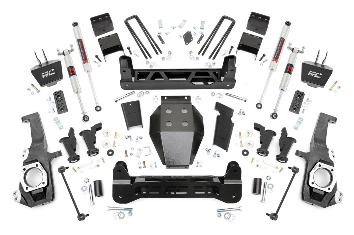 - Ultimate Upgrade. Give your GM 2500HD/3500HD an unbeatable stance and better ride quality with Rough Country's 5-inch Lift Kit with Torsion Drop. This kit is a unique offering of suspension lifts, delivering the desired torsion drop look and ride you want while still offering unmatched ground clearance. The Torsion Drop brackets are designed to ensure that your vehicle's track width is not widened and allows you to maintain the factory feel of handling corners and turns. So take your everyday ride and make it one of a kind with our 5-inch Lift Kit with Torsion Drop! Premium Construction. This 5-Inch rugged lift kit is made of heavy-duty laser-cut steel components, powder-coated for a long-lasting finish. It includes replacement knuckles, 1/4" thick steel cross members for the front and rear, fabricated lift blocks, and 1/4" thick Torsion Drop Bar Brackets. You also get the option to configure with multiple shock options that we offer. This allows you to choose the shock series that best fits your needs! Ranging from our nitrogen-charged N3 shocks, to V2 monotube shocks, or our high-performance Vertex adjustable shocks, the power to choose is in your hands. This setup will give you a level stance and the ride height you need to run those larger tires with ease. Installation and Warranty. This kit is packed with all hardware needed for installation and includes full sway bar links, a durable, thick Skid Plate, and brake line relocation brackets. Although some minor cutting and drilling are required, there is no drilling or modifying of the differential, and no drivetrain or exhaust modifications are required. Rough Country's products are backed with a limited lifetime replacement warranty. This means that you have the security of knowing that Rough Country's products will work as they should, even after years of use.
