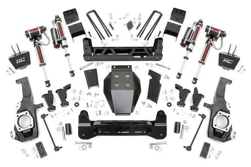 - Ultimate Upgrade. Give your GM 2500HD/3500HD an unbeatable stance and better ride quality with Rough Country's 5-inch Lift Kit with Torsion Drop. This kit is a unique offering of suspension lifts, delivering the desired torsion drop look and ride you want while still offering unmatched ground clearance. The Torsion Drop brackets are designed to ensure that your vehicle's track width is not widened and allows you to maintain the factory feel of handling corners and turns. So take your everyday ride and make it one of a kind with our 5-inch Lift Kit with Torsion Drop! Premium Construction. This 5-Inch rugged lift kit is made of heavy-duty laser-cut steel components, powder-coated for a long-lasting finish. It includes replacement knuckles, 1/4" thick steel cross members for the front and rear, fabricated lift blocks, and 1/4" thick Torsion Drop Bar Brackets. You also get the option to configure with multiple shock options that we offer. This allows you to choose the shock series that best fits your needs! Ranging from our nitrogen-charged N3 shocks, to V2 monotube shocks, or our high-performance Vertex adjustable shocks, the power to choose is in your hands. This setup will give you a level stance and the ride height you need to run those larger tires with ease. Installation and Warranty. This kit is packed with all hardware needed for installation and includes full sway bar links, a durable, thick Skid Plate, and brake line relocation brackets. Although some minor cutting and drilling are required, there is no drilling or modifying of the differential, and no drivetrain or exhaust modifications are required. Rough Country's products are backed with a limited lifetime replacement warranty. This means that you have the security of knowing that Rough Country's products will work as they should, even after years of use.