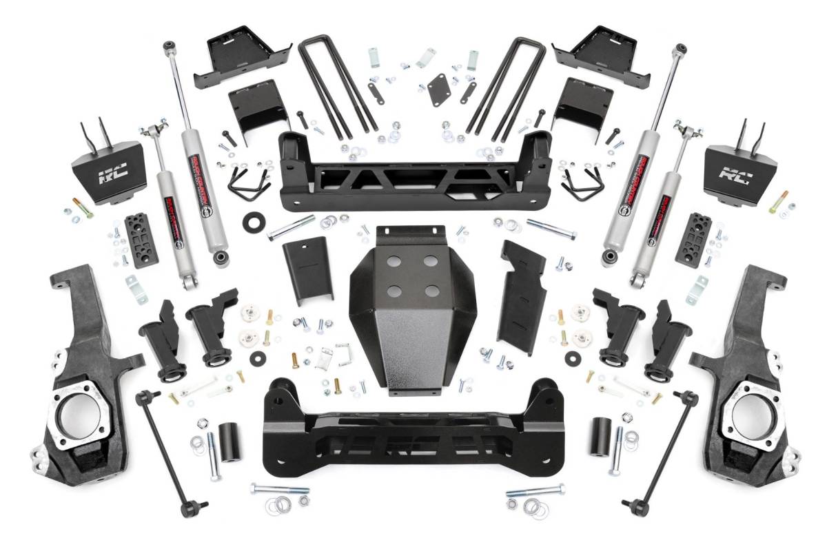 - Ultimate Upgrade. Give your GM 2500HD/3500HD an unbeatable stance and better ride quality with Rough Country's 7-inch Lift Kit with Torsion Drop. This kit is a unique offering of suspension lifts, delivering the desired torsion drop look and ride you want while still offering unmatched ground clearance. The Torsion Drop brackets are designed to ensure that your vehicle's track width is not widened and allows you to maintain the factory feel of handling corners and turns. So take your everyday ride and make it one of a kind with our 7-inch Lift Kit with Torsion Drop! Premium Construction. This 7-Inch rugged lift kit is made of heavy-duty laser-cut steel components, powder-coated for a long-lasting finish. It includes replacement knuckles, 1/4" thick steel cross members for the front and rear, fabricated lift blocks, and 1/4" thick Torsion Drop Bar Brackets. You also get the option to configure with multiple shock options that we offer. This allows you to choose the shock series that best fits your needs! Ranging from our nitrogen-charged N3 shocks, to V2 monotube shocks, or our high-performance Vertex adjustable shocks, the power to choose is in your hands. This setup will give you a level stance and the ride height you need to run those larger tires with ease. Installation and Warranty. This kit is packed with all hardware needed for installation and includes full sway bar links, a durable, thick Skid Plate, and brake line relocation brackets. Although some minor cutting and drilling are required, there is no drilling or modifying of the differential, and no drivetrain or exhaust modifications are required. Rough Country's products are backed with a limited lifetime replacement warranty. This means that you have the security of knowing that Rough Country's products will work as they should, even after years of use.
