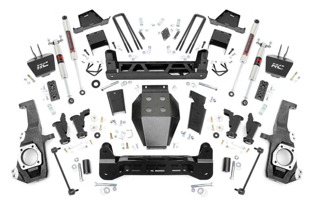 - Ultimate Upgrade. Give your GM 2500HD/3500HD an unbeatable stance and better ride quality with Rough Country's 7-inch Lift Kit with Torsion Drop. This kit is a unique offering of suspension lifts, delivering the desired torsion drop look and ride you want while still offering unmatched ground clearance. The Torsion Drop brackets are designed to ensure that your vehicle's track width is not widened and allows you to maintain the factory feel of handling corners and turns. So take your everyday ride and make it one of a kind with our 7-inch Lift Kit with Torsion Drop! Premium Construction. This 7-Inch rugged lift kit is made of heavy-duty laser-cut steel components, powder-coated for a long-lasting finish. It includes replacement knuckles, 1/4" thick steel cross members for the front and rear, fabricated lift blocks, and 1/4" thick Torsion Drop Bar Brackets. You also get the option to configure with multiple shock options that we offer. This allows you to choose the shock series that best fits your needs! Ranging from our nitrogen-charged N3 shocks, to V2 monotube shocks, or our high-performance Vertex adjustable shocks, the power to choose is in your hands. This setup will give you a level stance and the ride height you need to run those larger tires with ease. Installation and Warranty. This kit is packed with all hardware needed for installation and includes full sway bar links, a durable, thick Skid Plate, and brake line relocation brackets. Although some minor cutting and drilling are required, there is no drilling or modifying of the differential, and no drivetrain or exhaust modifications are required. Rough Country's products are backed with a limited lifetime replacement warranty. This means that you have the security of knowing that Rough Country's products will work as they should, even after years of use.