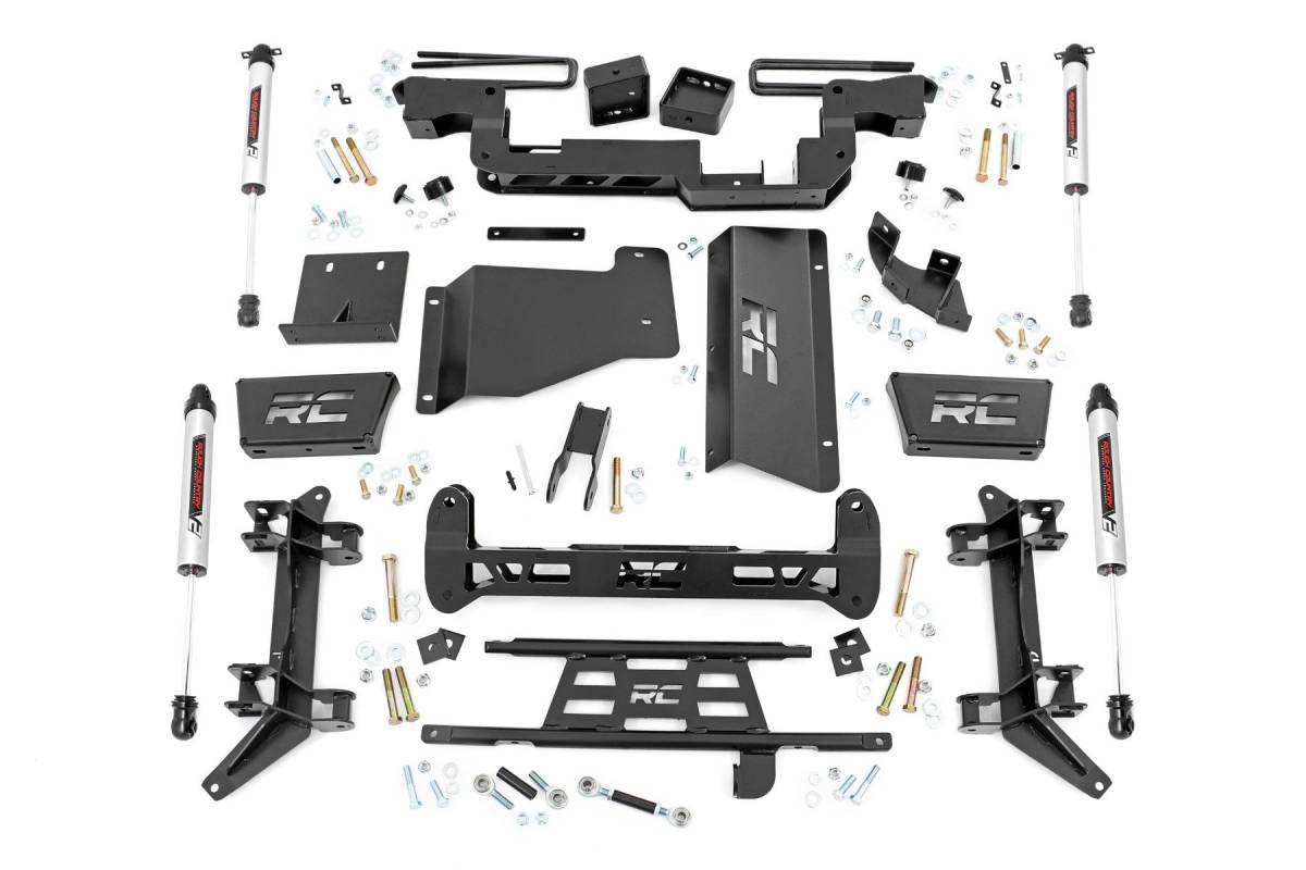 - Take your truck to the next level with Rough Country's 6in Lift Kit for 1988-2000 GM 2500 Pickups! This all-inclusive kit has everything you need for a total transformation. Designed to elevate your ride and give you serious off-road capabilities, this kit boosts your Truck's ground clearance, allowing you to run up to 35x12.50 tires!Retains stock track width: Maintains your truck's factory track width for optimal handling and stability, giving you a smooth, controlled driving experience both on and off the road.Increased ground clearance: Boost your ground clearance for superior off-road capability and obstacle clearance, helping you navigate tough trails with ease.Fabricated blocks: Stronger & longer lifespan: Featuring high-strength fabricated blocks, this kit offers enhanced durability compared to cast alternatives, ensuring long-lasting performance and reliability.RC laser cut logos: Torsion bar drop brackets & front skid plate come with custom RC laser-cut logos for added style and branding because your truck should look as tough as it performs. Configurable Shock Options: Choose from N3, V2 Monotube, or M1 Monotube shocks tailor your ride's performance to your exact needs, whether you're cruising the highway or conquering the toughest trails. Rough Country 6in Lift Kit for 88-98 GM 2500 Pickups is the perfect upgrade for anyone seeking power, performance, and style. With enhanced ground clearance, rugged durability, and customizable shock options, this kit will transform your truck into an unstoppable off-road machine.