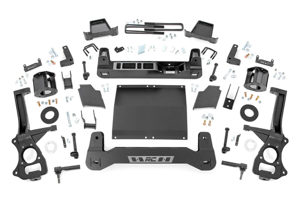 - GM's fourth-generation Silverado/fifth-generation Sierra 1500 boasts an aggressive new design, built from the ground up to dominate the road and trail. Transform your truck with Rough Country's 6-Inch Suspension Lift and experience the perfect blend of bold styling, increased clearance, and enhanced off-road capability. Lift and Level for Performance: This kit lifts and levels your Sierra, delivering enhanced ground clearance to tackle rugged terrain while maintaining a confident stance. Engineered for optimized suspension geometry, the high-clearance crossmember design ensures proper alignment and superior handling, so you get off-road performance without sacrificing ride quality. Durability and Precision: Rough Country's 6-Inch Suspension Lift retains the factory track width, providing a precise and stable ride while allowing room for 35x12.50 tires on 10-inch wide wheels with 4.5-inch backspacing. Built for extreme durability, the heavy-duty cast knuckles provide lasting strength, while fabricated blocks outperform cast blocks for superior longevity. Plus, with precision-engineered, laser-cut materials, this lift kit ensures a perfect fit and uncompromising reliability. Limited Lifetime Replacement Warranty: Rough Country's 6" Suspension Lift Kit is backed with a limited lifetime replacement warranty towards manufacturer defects. As such, the product is protected from structural and workmanship damage after the date of purchase. With our industry-leading warranty give yourself peace of mind when using Rough Country's Suspension products!