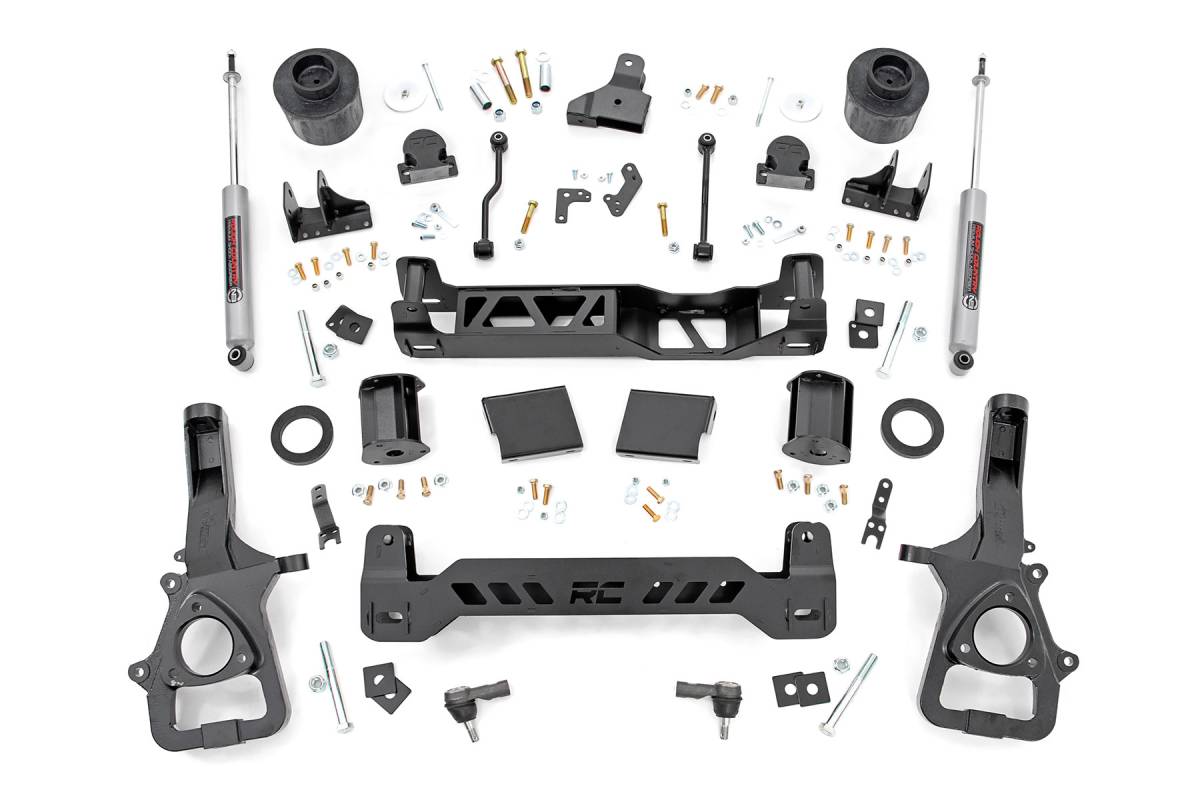 - Take Your Vehicle to New Heights: Transform your 5th generation RAM 1500 2WD into an absolute BEAST with Rough Country's 6-Inch Suspension Lift Kit. This all-inclusive kit comes with everything you need to give your truck an aggressive look and a formidable stance that complements the revamped design and upgraded look of this rugged vehicle. Durable Design and Function: Rough Country's 6in Suspension Lift gives you plenty of increased ground clearance for off-road action and enough additional ride height to run up to 35in tires for a head-turning look that's sure to command attention. Each kit features a set of high-quality front and rear cross members with a laser-cut RC logo, giving the truck a fierce, but streamlined look after lifting. For true trailblazers, this kit also ships with a set of rear N3 Nitrogen-charged shock absorbers, valved specifically for a blend of on and off-road performance. This kit also includes an upgraded outer tie-rod that's engineered to optimize turning and minimize bump steer while allowing you to fit a wider variety of wheels. Installation: With minor cutting and a strut compressor required to install, an estimated timeframe of 7-8 hours is recommended to complete this full installation. This full kit can be installed at home and can be completed efficiently and quickly! Limited Lifetime Replacement Warranty: Rough Country's 6" Suspension Lift Kit is backed with a limited lifetime replacement warranty towards manufacturer defects. As such, the product is protected from structural and workmanship damage after the date of purchase. With our industry-leading warranty give yourself peace of mind when using Rough Country's Suspension products!