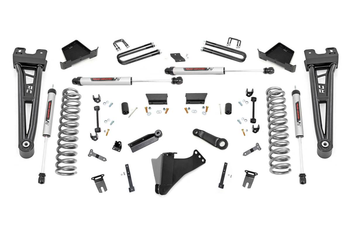 - Superior Ride Quality. Take your fifth-generation Ford Super Duty to new heights with Rough Country's 6-inch Radius Arm Drop Suspension Lift! This all-inclusive kit comes with everything you need for a total transformation of your truck. Run up to 37in tires while preserving the smooth, factory ride quality with this impressive upgrade. Durable Components. When changing a vehicle's suspension, the key to preserving ride quality is keeping the geometry of all suspension components as close to their factory angles as possible. Rough Country's new 6-inch Suspension Lift features a set of tubular radius arms, precision fit to bolt right into the factory mounts for an easier installation and a more factory-like angle. Fearing a massive 2" O.D. these beefy, upgraded radius arms dwarf stock equipment and feature durable rubber bushings for maximum vibration absorption. Installation. Requiring cutting and drilling to install, an estimated timeframe of 6-10 hours is recommended to complete this full installation. This full kit can be installed at home and can be completed efficiently and quickly! Limited Lifetime Replacement Warranty. Rough Country's 6-inch Suspension Lift Kit is backed with a limited lifetime replacement warranty towards manufacturer defects. As such, the product is protected from structural and workmanship damage after the date of purchase. With our industry-leading warranty give yourself peace of mind when using Rough Country's Suspension products!