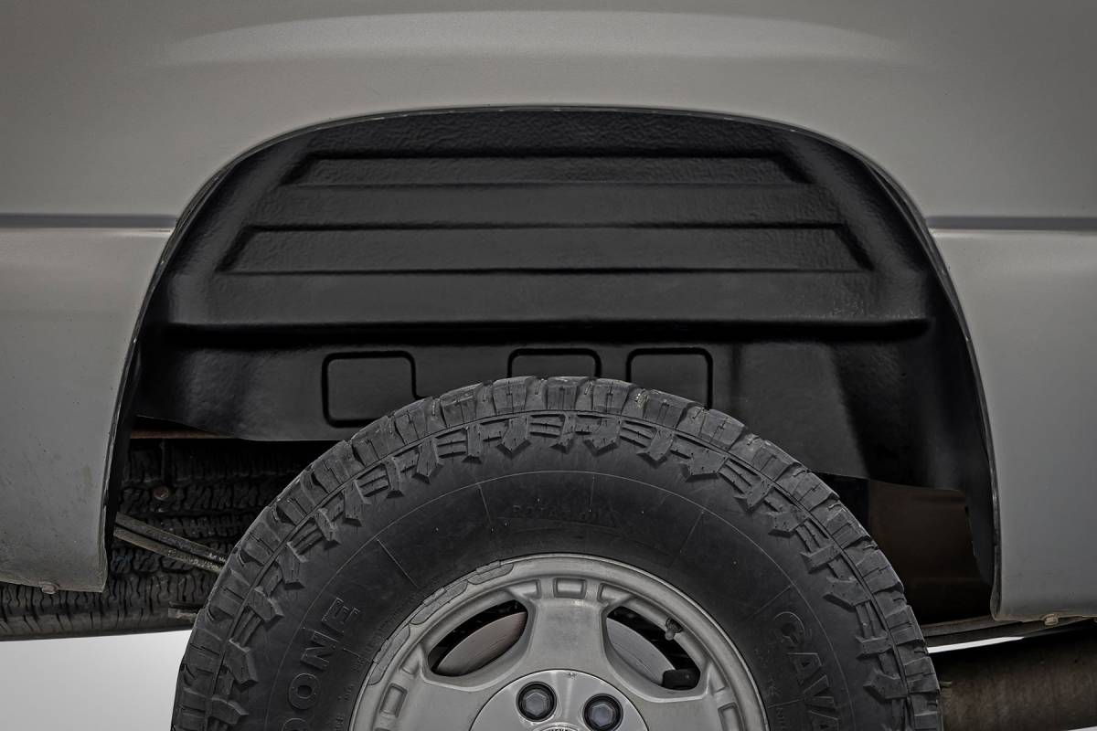 - Give your rear wheel wells superior protection and a striking, new look with Rough Country's Rear Wheel Well Liners. Made of high-density Polyethylene plastic, these durable liners help conceal the unsightly gap between the body and frame which is more noticeable after lifting. The stylish, contoured design is perfectly tailored for a precise fit to your truck, while the all-black finish helps bring an aggressive look to the rear of your vehicle. Rough Country Rear Wheel Well Liners offer an extra barrier of protection to help shield your wheel wells from rocks, mud, salt, and harsh weather. With all the small, hard to clean areas covered, cleanup is fast and simple. Installation is easy too! Rough Country Rear Wheel Well Liners feature a bolt-on installation process that's easy enough to do with common tools in a home garage.