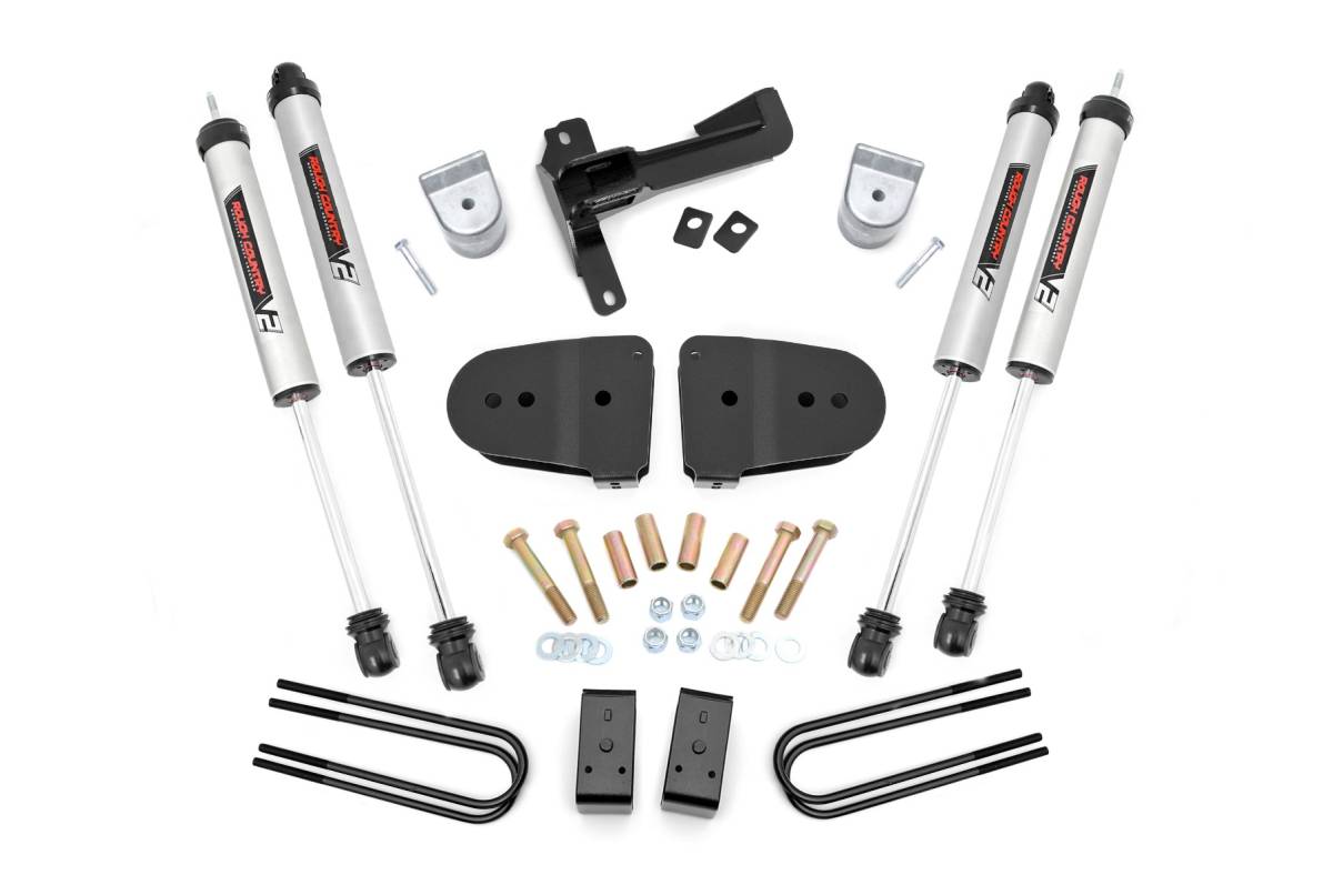 - Give your 5th generation Ford Super Duty an impressive upgrade, front to back with Rough Country's 3" Suspension Lift Kit! This easy-to-install lift kit raises the front of your vehicle to be equal height with the rear for a leveled, better-than-stock look that gives an improved ride height and more aggressive appearance. This kit features a set of front, lifted coil springs spacers allowing you gain additional ride height without sacrificing ride quality or performance. A set of radius arm drop brackets as well as a track bar drop bracket are provided to keep everything at optimum angles for a factory-like ride, even after lifting. A set of Rough Country's premium N3 shocks are also included. These fine tuned 10-stage variable high-pressure Nitrogen charged shocks offer a fantastic blend of off-road action and smooth highway ride quality. With a durable 18mm spring-loaded piston rod and faster-cooling 54mm shock body. Get the wheels you want! Rough Country's 3" Suspension Lift Kit comes with everything you need to fit up to a 35" tire with proper wheel backspacing. Best of all, Rough Country's 3" Suspension Lift Kit is backed by our Limited Lifetime Replacement Warranty.