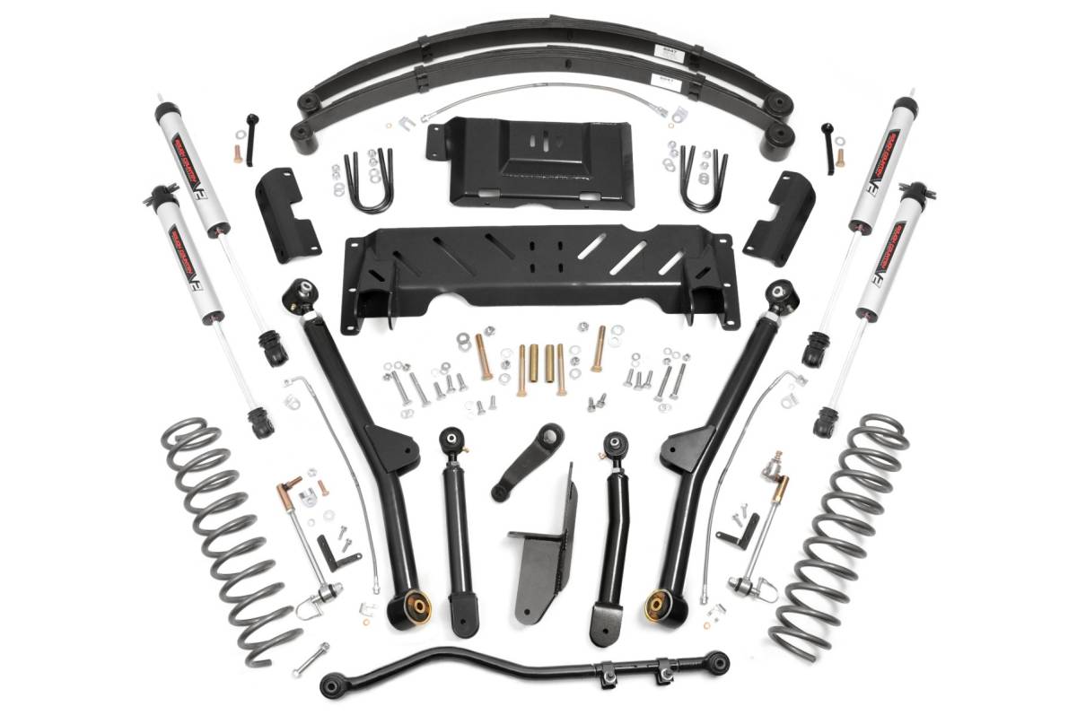 - Unleash Your XJ's Full Potential: Take your Jeep Cherokee XJ's already capable platform to the next level with Rough Country's 4.5-inch Long Arm Suspension Kit. This fully bolt-on upgrade relocates the front control arms to achieve optimum alignment angles while delivering insane articulation for superior off-road performance. Engineered for Maximum Strength: Featuring heavy-duty high-clearance lower control arms and extreme-travel long arms, this system keeps your suspension geometry dialed in while boosting ground clearance. X-Flex control arms are equipped with Clevite OEM-style rubber bushings and oversized flex joints with a massive 2.5-inch body and 1.25-inch threads. Fully greaseable and built for longevity, these arms allow upper joints to pivot up to 20 degrees and lower joints up to 35 degrees, perfect for conquering uneven terrain. Premium Shock Performance: Choose from Rough Country's advanced shock lineup, including N3, V2, or M1 monotube options, each engineered for a perfect balance of on-road comfort and off-road control. All shocks feature 10-stage variable valving, a high-pressure nitrogen charge, durable 18mm spring-loaded piston rods, and oversized shock bodies for faster cooling, enhanced ride quality, and long-lasting durability. Customize Your Ride: Available with add-a-leaf springs for a cost-effective lift or full replacement leaf packs for premium ride quality and strength. Unmatched Value: Get top-quality craftsmanship, extreme off-road capability, and long-lasting durability, all at an unbeatable price backed by Rough Country's trusted reputation.