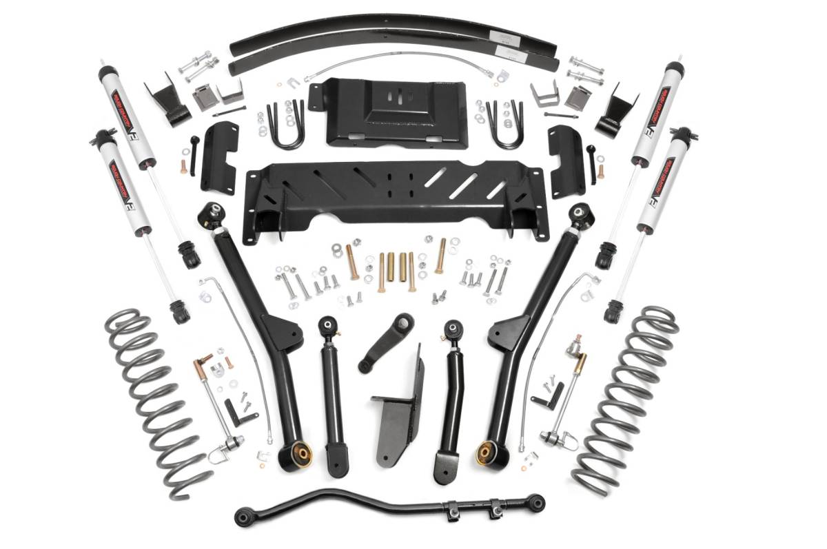 - Unleash Your XJ's Full Potential: Take your Jeep Cherokee XJ's already capable platform to the next level with Rough Country's 4.5-inch Long Arm Suspension Kit. This fully bolt-on upgrade relocates the front control arms to achieve optimum alignment angles while delivering insane articulation for superior off-road performance. Engineered for Maximum Strength: Featuring heavy-duty high-clearance lower control arms and extreme-travel long arms, this system keeps your suspension geometry dialed in while boosting ground clearance. X-Flex control arms are equipped with Clevite OEM-style rubber bushings and oversized flex joints with a massive 2.5-inch body and 1.25-inch threads. Fully greaseable and built for longevity, these arms allow upper joints to pivot up to 20 degrees and lower joints up to 35 degrees, perfect for conquering uneven terrain. Premium Shock Performance: Choose from Rough Country's advanced shock lineup, including N3, V2, or M1 monotube options, each engineered for a perfect balance of on-road comfort and off-road control. All shocks feature 10-stage variable valving, a high-pressure nitrogen charge, durable 18mm spring-loaded piston rods, and oversized shock bodies for faster cooling, enhanced ride quality, and long-lasting durability. Customize Your Ride: Available with add-a-leaf springs for a cost-effective lift or full replacement leaf packs for premium ride quality and strength. Unmatched Value: Get top-quality craftsmanship, extreme off-road capability, and long-lasting durability, all at an unbeatable price backed by Rough Country's trusted reputation.