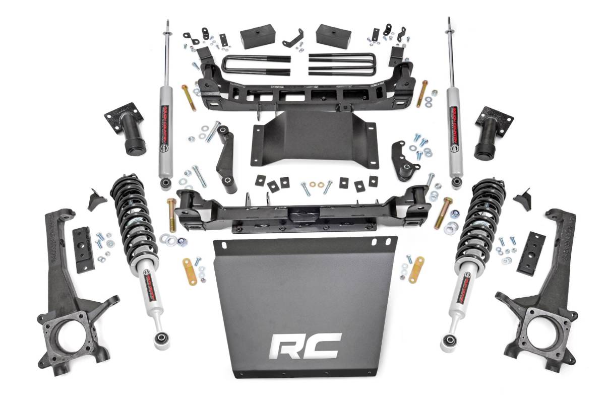 - Total Transformation: Elevate your Toyota Tacoma with Rough Country's 4-inch lift kit, providing boosted ground clearance and an aggressive stance for enhanced off-road performance. Premium Components: This all-inclusive kit includes durable lifted knuckles, front and rear crossmembers, and fabricated lift blocks, offering long-lasting reliability and rugged performance. Hassle-Free Installation: No need for strut disassembly or a compressor-installation is quick and easy, so you can get back on the trails faster. Unmatched Ride Quality: Fully configurable with multiple shock and strut options, choose from our nitrogen-charged N3 shocks for a smooth ride or upgrade to the M1 monotube for superior off-road control. Aggressive Look & Performance: Run up to 32 x 10.50 tires while achieving a bold, lifted profile that turns heads. Backed by Rough Country's Limited Lifetime Replacement Guarantee, this kit is designed for the long haul.