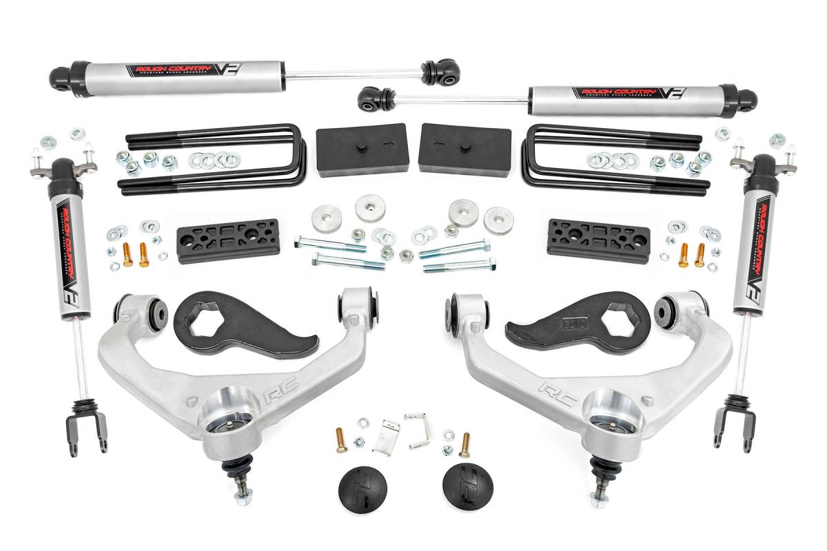 - Take Your GM HD Higher: Transform your truck with Rough Country's 3-inch Bolt-On Lift Kit, delivering aggressive good looks, added clearance, and unbeatable performance at an incredible value. This kit is engineered specifically for GM HD models to provide a perfect blend of strength, drivability, and style. Engineered for Easy Installation: Featuring a 100% bolt-on installation, this kit requires no cutting, drilling, or special tools, making it one of the easiest lift kits to install on the market. The fully reversible design also lets you return your truck to stock height at any time without hassle. Unmatched Strength and Geometry: At the heart of this kit are high-articulation forged solid aluminum upper control arms. Built with a one-piece design to eliminate weak welded points, these arms deliver superior strength and durability. Optimized axle geometry is maintained through differential drop brackets, keeping driveline angles in check to reduce wear while extending long-term performance. POM ball joints come pre-installed for quicker setup and smoother articulation, with the option to upgrade to a bold red finish for added style. Premium Ride Quality: This kit includes a set of forged torsion bar keys for uncompromising rigidity, as well as Rough Country's nitrogen-charged N3 shocks for improved performance on and off-road. For those looking to push performance even further, this kit is compatible with all shock options, including Rough Country's premium Vertex reservoir shocks. All-Inclusive, All-Around Performance: With everything you need right out of the box, this lift kit provides the clearance to run larger tires while delivering a clean, leveled stance from front to rear. Backed by Rough Country's Limited Lifetime Replacement Warranty, this kit is the perfect choice for truck owners who demand strength, reliability, and a factory-quality ride at a fraction of the cost.