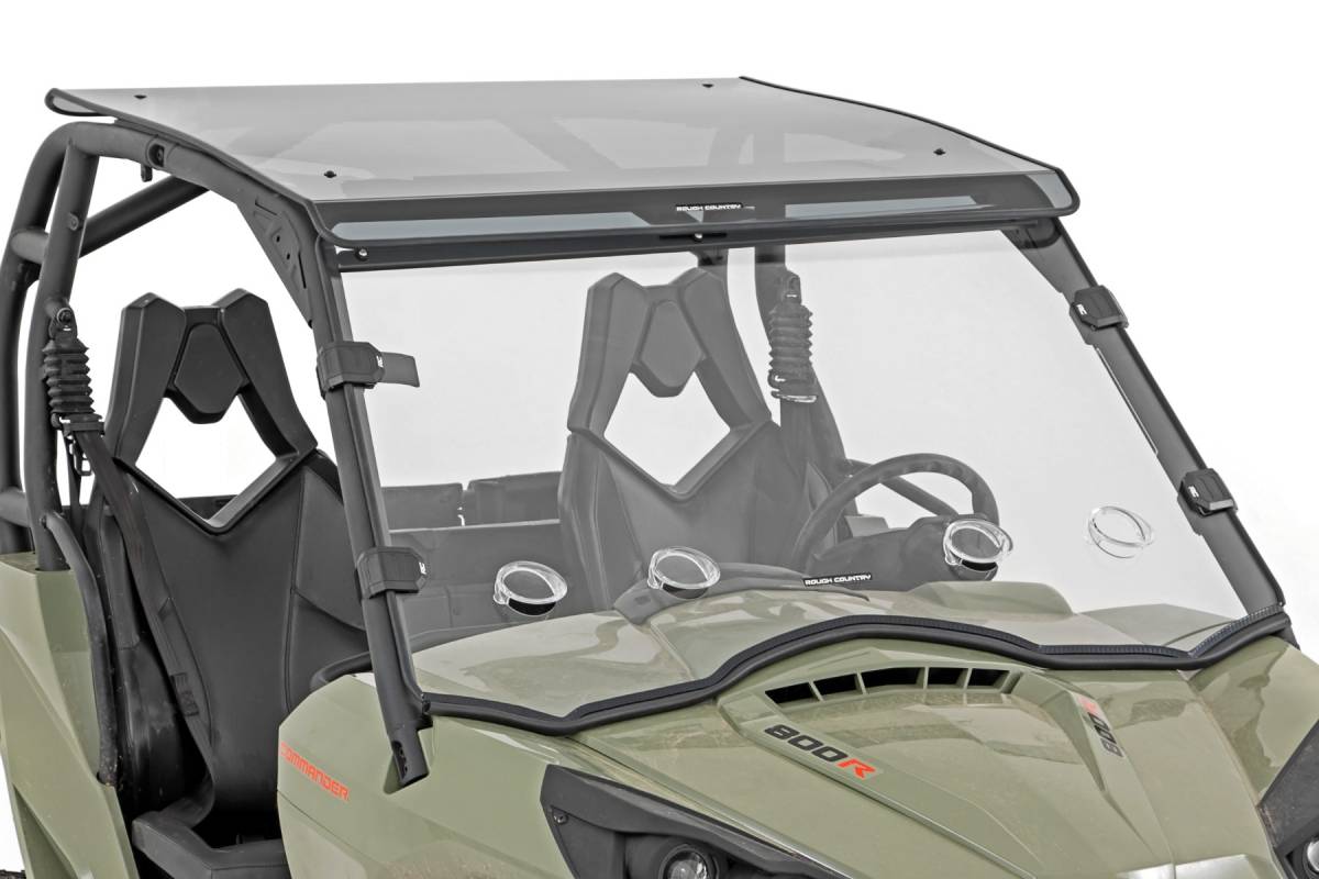 - Added Protection and Customizable Comfort: Shield the occupants of your Can-Am Commander from off-road hazards like rocks, branches, and debris with Rough Country's Scratch-Resistant Windshield. This innovative design combines protection with unmatched comfort by featuring 4 adjustable vents that allow you to control airflow to suit your needs. Vents can be closed, opened, or half-opened for ultimate versatility. Whether you're navigating dusty trails or keeping cool on hot days, the 360 Deg. rotating vents provide superior flexibility, making every ride more enjoyable. High-Quality Polycarbonate Construction: Crafted from thick .25 polycarbonate material, Rough Country windshields deliver the ultimate combination of clarity, flexibility, and durability. Precision cut for a flawless fit, this material outperforms glass and acrylic in toughness, ensuring your windshield can handle even the roughest terrains. Enhanced Durability with Scratch and UV Resistance: Each windshield is coated with a secondary AR2 hard-coating process, creating a robust scratch-resistant barrier that extends its lifespan. This treatment also provides UV protection, ensuring your windshield remains clear and functional for years to come.Contoured Design with a Precision Fit: The contoured design and premium rubber seal ensure a secure, rattle-free fit that keeps out dust, debris, and water, while seamlessly complementing the rugged aesthetics of your Can-Am Commander.