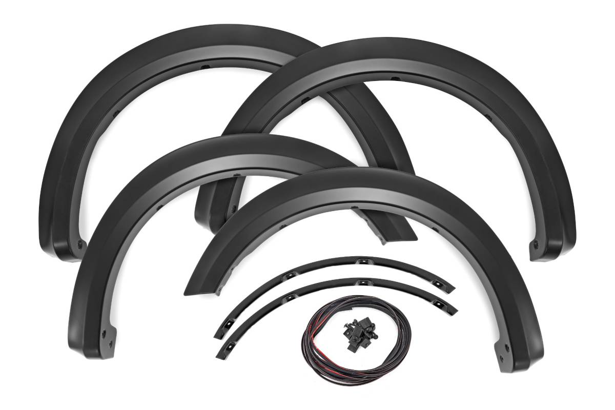 - Style and Protection. Unlock the power of real protection and custom style with Rough Country's Sport Style Fender Flares for your ninth-generation F-150! Offering 5.75 inches of Flare Height, you know your truck is getting the coverage it needs from flying debris and road grime. Not only will these flares safeguard your vehicle, but they will look great too - featuring a bold custom look that stands out and turns heads. Plus, if you want to take your customization game up a notch, these fender flares are easily paintable so they can match your truck in color and style. Get ready to rock this new rugged look with Rough Country's Tundra Sport Style Fender Flares! Sturdy Construction. These bold and rugged fender flares are designed exclusively for Ford F-150 owners, creating an instant upgrade for your ride. Made from a special Tri-Blend ABS material, these flares have maximum strength and durability, ensuring they will stand up to the toughest conditions that nature has to offer. For added protection, each fender is machine-formed to exact specifications with a high-grade UV protection. Not only do these fender flares look great, but you can trust that they will hold up and continue looking fresh despite the elements. Installation and Warranty. Featuring an easy and quick installation process, these flares have been designed to provide your truck with the stylish look you've been searching for without any of the hassle. Plus, if you need to bring your truck back to its original specs, the flares can be removed in a flash! But that's not all each set comes equipped with a three-year limited warranty. Stop dreaming about that showroom-level look and make it happen with Rough Country's F-150 Sport Style Fender Flares.