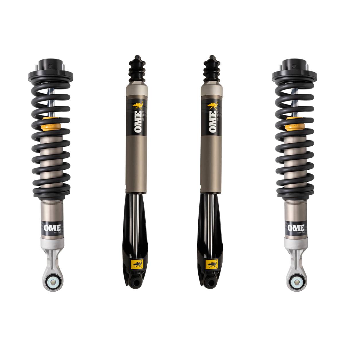 - Old Man Emu offers a range of tuned and matched integrated suspension kits to ensure the right suspension is selected for how the vehicle is outfitted and the conditions it will encounter. Old Man Emu suspension systems are designed to enhance ride quality, ride control, load-carrying capacity, and ride height. When building an off-road vehicle, it's best to notate the heavy parts that you plan to add. Heavy components will slowly begin to compress your suspension which results in vehicle sag. Choosing an Old Man Emu integrated suspension kit will avoid sag and ride discomfort as our engineers have tuned and matched suspension components for an range of different weights. This suspension lift kit comes with Old Man Emu MT64 shocks. The MT64 shocks are engineered to handle every challenge, from demanding overlanding trips to the daily commute and every custom build in between, the MT64's huge 2.8in aluminum body and vehicle-specific damping ensure optimal performance across any terrain. This suspension lift kit is tuned and matched for the Toyota Tacoma to provide 3in of lift in the front, with a weight of 220-330lbs and provide 0in of lift in the rear with a weight of 0lb.
