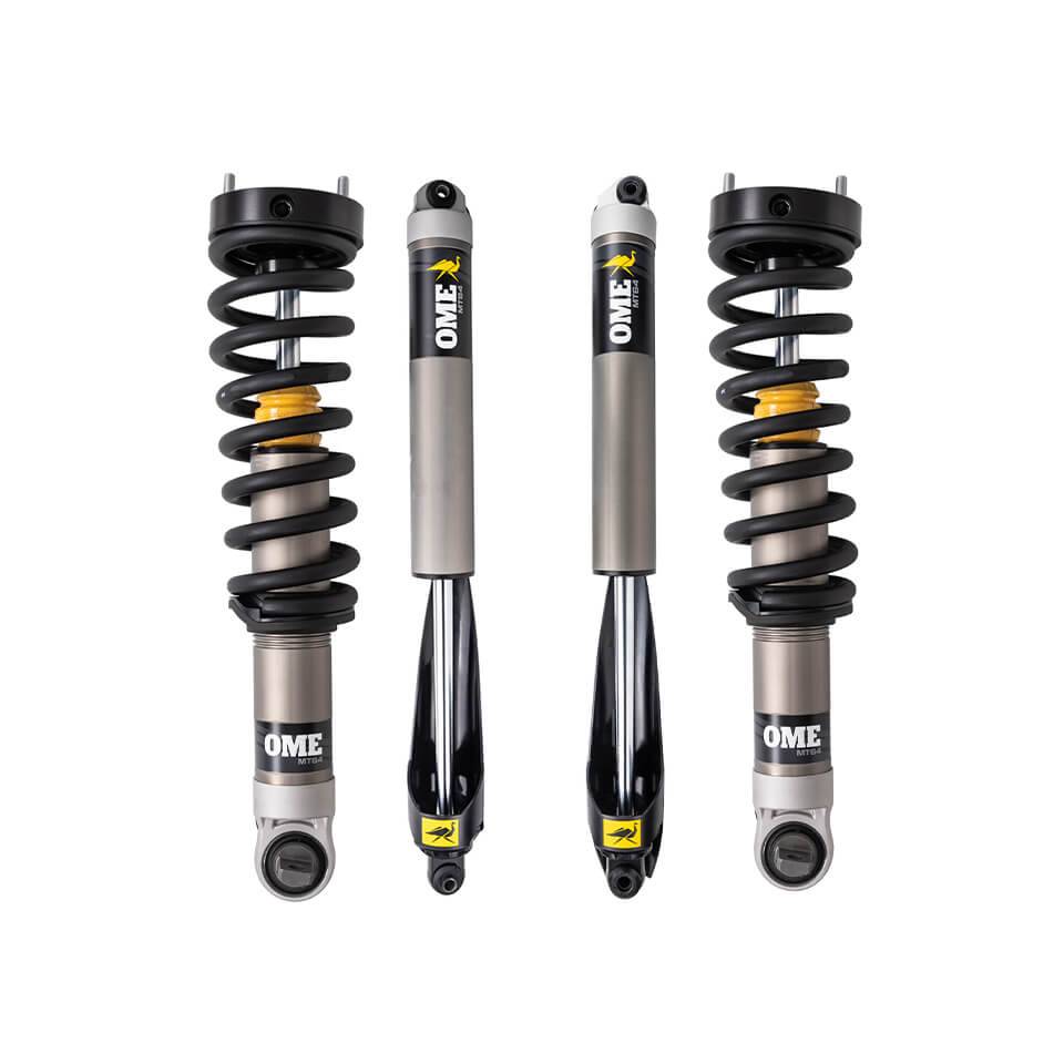- Old Man Emu offers a range of tuned and matched integrated suspension kits to ensure the right suspension is selected for how the vehicle is outfitted and the conditions it will encounter. Old Man Emu suspension systems are designed to enhance ride quality, ride control, load-carrying capacity, and ride height. When building an off-road vehicle, it's best to notate the heavy parts that you plan to add. Heavy components will slowly begin to compress your suspension which results in vehicle sag. Choosing an Old Man Emu integrated suspension kit will avoid sag and ride discomfort as our engineers have tuned and matched suspension components for an range of different weights. This suspension lift kit comes with Old Man Emu MT64 shocks. The MT64 shocks are engineered to handle every challenge, from demanding overlanding trips to the daily commute and every custom build in between, the MT64's huge 2.8in aluminum body and vehicle-specific damping ensure optimal performance across any terrain. This suspension lift kit is tuned and matched for the Ford F-150 to provide 2.5in of lift in the front, with a weight of 0lb and provide 0in of lift in the rear with a weight of 0lb.